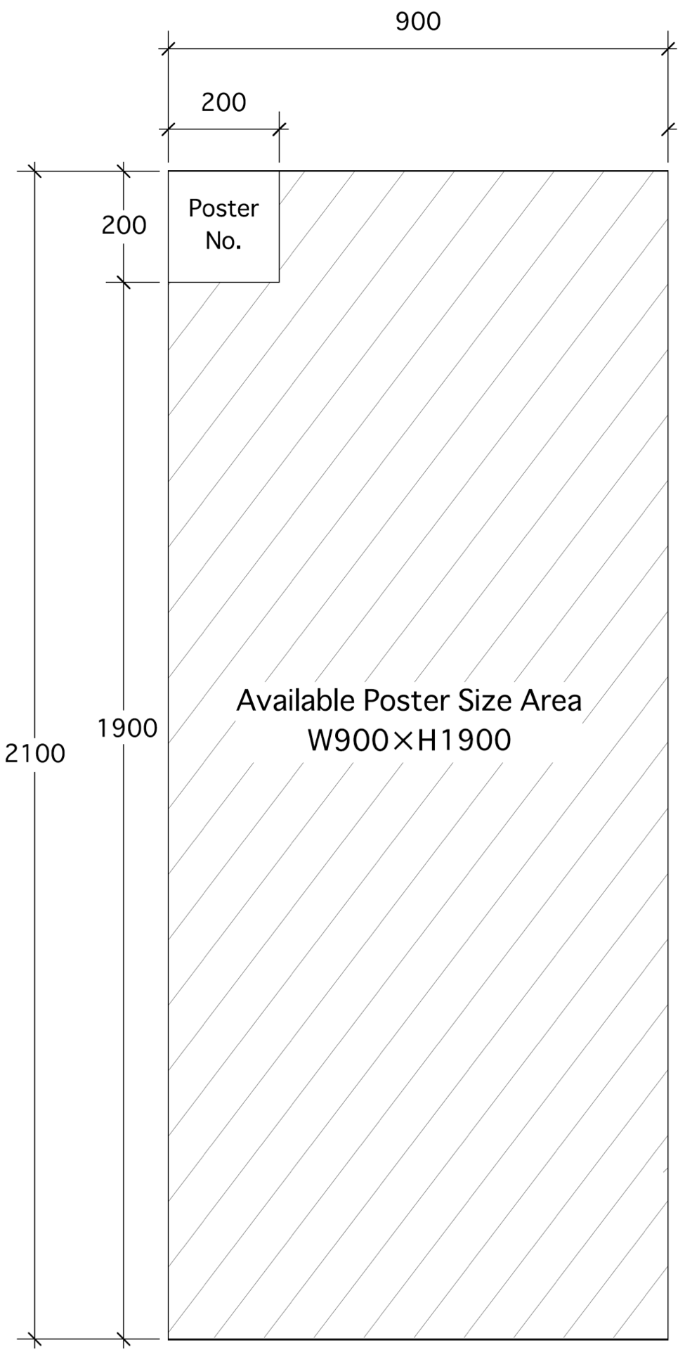 - Display your poster on your assigned poster board (2100 mm long x 900 mm wide). Presentation No. for your poster is displayed in the upper left corner of the board. Press pins are available for fixing your posters.